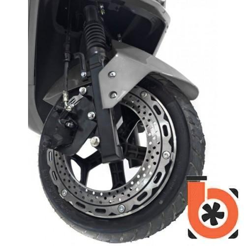 Современный эргономичный дизайн включает в себя удобное, большое и мягкое сиденье, достаточно длинное для того, чтобы можно было брать пассажира, легко управляемый руль, а также достаточно широкую платформу для удобного размещения ног. Для безопасной езды по городским магистралям, транспортное средство укомплектовано полноценными зеркалами заднего вида. Также, в сборке электроскутера имеется яркая светодиодная фара для освещения дороги в темное время суток и удобный LCD дисплей с индикатором батареи и скорости.