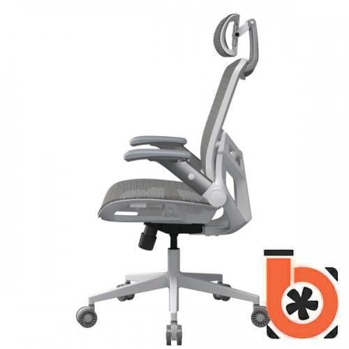 Складывающиеся 2D-подлокотники поддерживают различные положения рук, а подголовник регулируется для индивидуального комфорта.