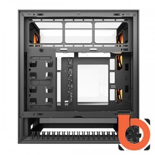 Идеально симметричный дизайн обеспечивает полную свободу ориентации. Благодаря двойным прозрачным стеклянным панелям, которые позволяют продемонстрировать вашу сборку с любого угла, OmnyX выглядит потрясающе, независимо от того, расположен он справа, слева или по центру.