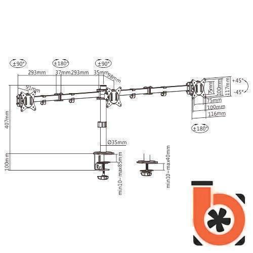 Кронштейн для 3 мониторов Gembird MA-D3-01 17-27"